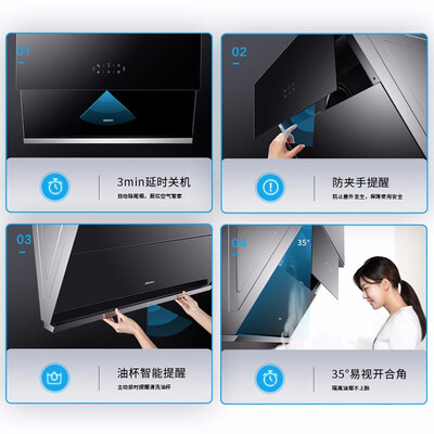 油烟机采用炫黑简约设计,雅致不凡,提升居家格调。吸力强劲,快速排烟。燃气灶采用台嵌两用设计,满足不同使用需求。