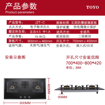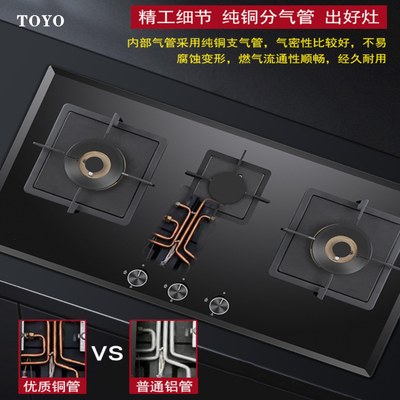 900MM的宽大面板设计,三个锅具同时烹饪,不拥挤提升做饭的效率。采用纯铜材质的分气管,有效提升密封效果,不易变形。