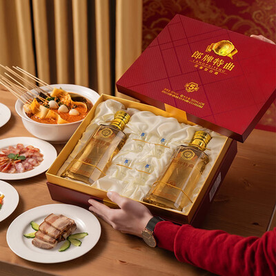双瓶装的红色礼盒包装,走亲访友时携带更有面子。萃取五粮之精粹,给您带来更丰富的口感和香浓的酒香。