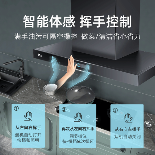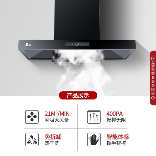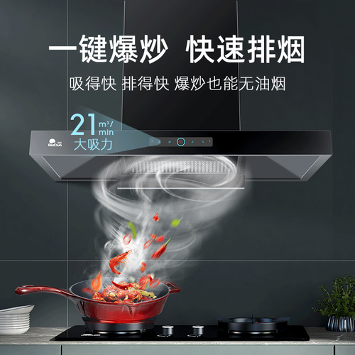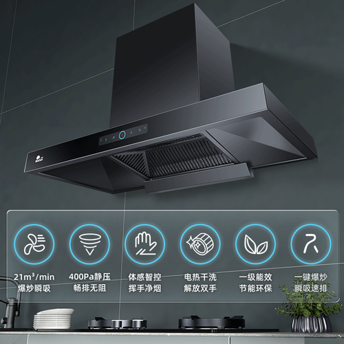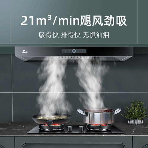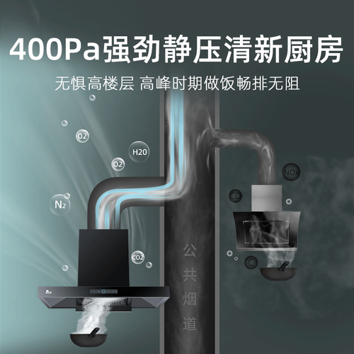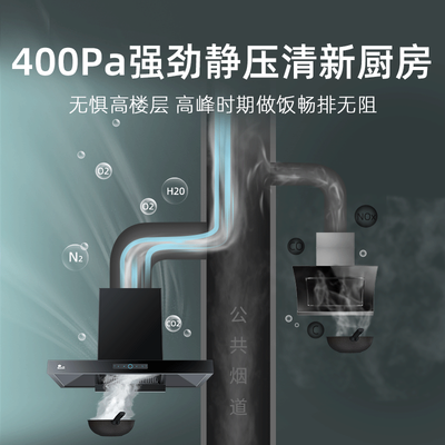 21m³/min飓风大吸力,轻松排走浓重浓烟。400Pa静压值,有效防止油烟倒灌,高楼层也能享受清新厨房。
