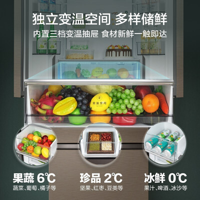 内置雷达感温探头,可以准确地感知温度变化,能够及时地调节温度以便保鲜食材。同时具有双一级变频,每天使用不到一度电更环保。
