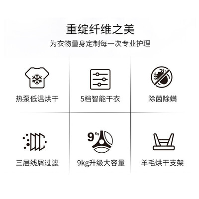 采用热泵低温烘干技术,保证衣物不会过度烘干,减少衣物损害。多种智能烘干模式,根据不同的情况随心选择。