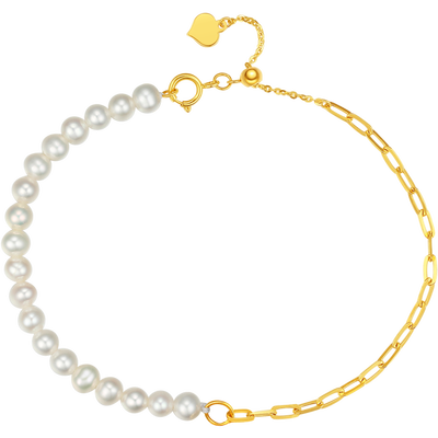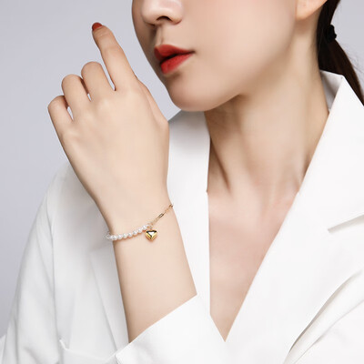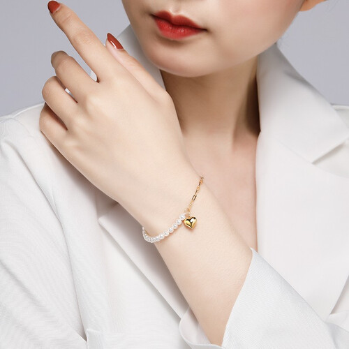 圆润的珍珠与亮丽的K金相结合,打造不一样的造型,轻奢唯美。尾部小爱心点缀,增添吸睛点,更显新颖别致。