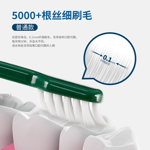加宽的刷毛设计,在保障刷牙舒适度的前提下,增大齿间接触面积,刷牙更周到。柔软的刷毛可弯曲,温柔对待您的每颗牙齿。