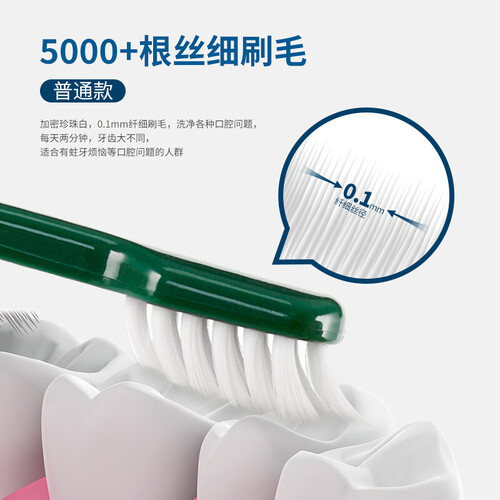 加宽刷头上,密植5000根纤细刷丝,实力清洁牙垢,不单让牙齿更洁净还节省时间。并且尖端细毛,软硬适中,洁齿不伤齿.