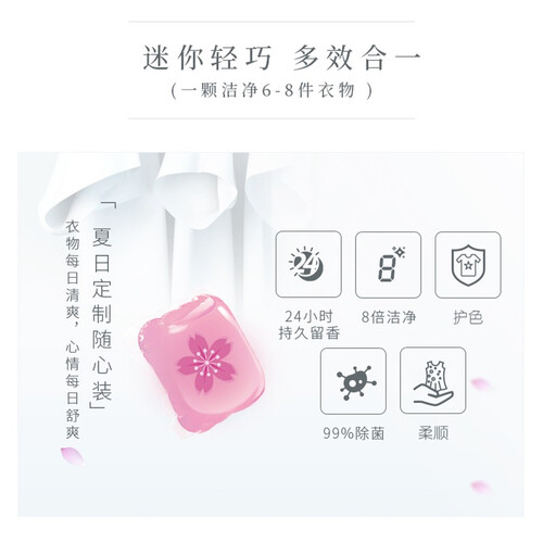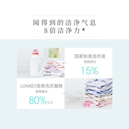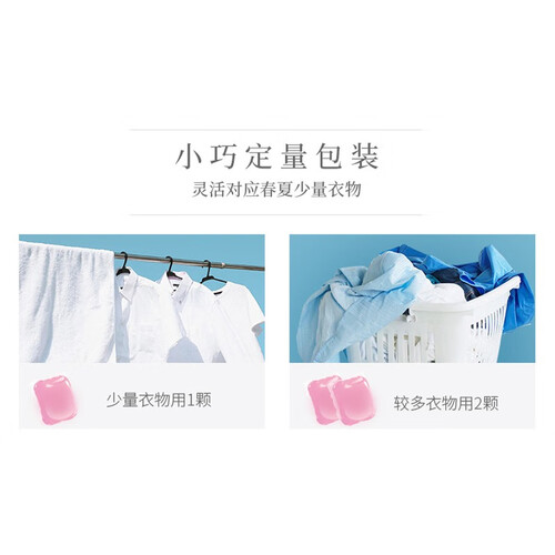 定量包装的洗衣凝珠,少量衣物一次用一颗。由瑞士香氛机构研制的香氛,可以消除衣物上的异味,整日清新。