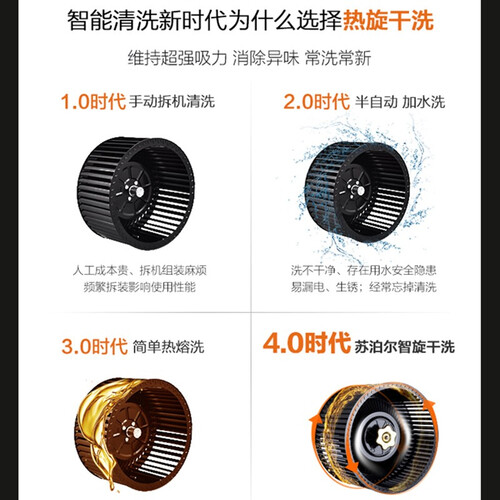 智旋干洗设计,一键即净不费力,清洁快捷省心。20m³/min大吸力,强劲吸烟排烟,紧锁油烟不漏烟。