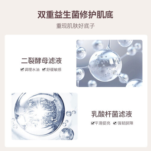 添加丰富的益生菌,平衡肌肤表面微生态,增强抵抗力。八重补水成分,肌肤水油更均衡,从根源缓解过度出油。