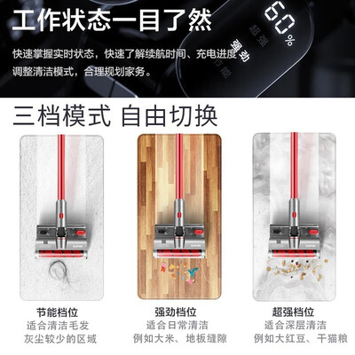 拥有吸拖多种功能,一台机器就能解决不同的家务,省时省力。采用智能数显技术,大屏幕看的才清楚,方便操作。