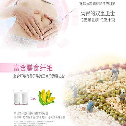 高蛋白,低脂肪,帮助孕妈妈控制孕期体重。高膳食纤维和益生菌成分,双重呵护肠胃,多维营养。保持孕期慢慢活力。