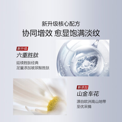 创新的10%五重胜肽组合,由内而外充盈紧致肌肤,双效淡化肌肤细纹。持续使用28天,见证肌肤带来的改变。
