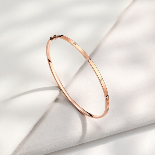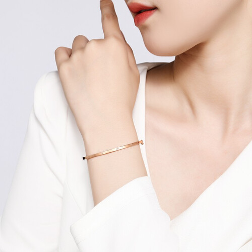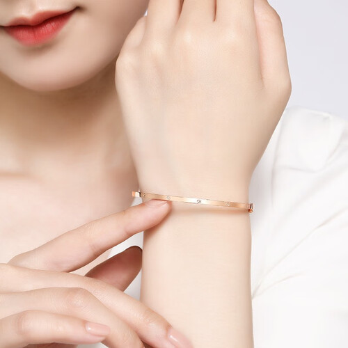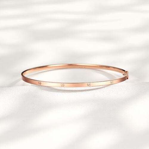 18K金手镯色泽亮丽持久,戴在手腕上时尚又显白。采用抛光亮面工艺,融入十字螺丝钉设计,单戴、叠戴都能彰显出非凡品位。