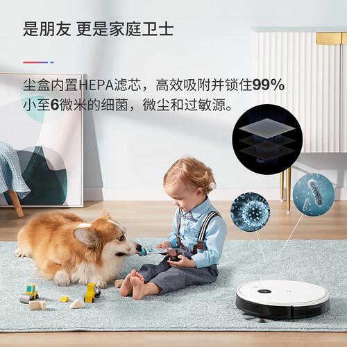配备电控水箱,扫地和拖地结合在一起,提升清扫效率,更快完成屋内清洁。机械避障作用,可对障碍物进行躲避,避免机器损伤。