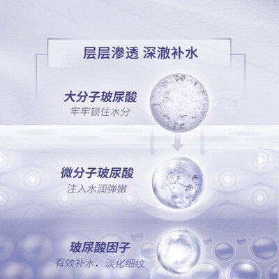 采用三重玻尿酸配方,小分子玻尿酸层层渗透肌底,为肌肤注入弹润水分。补水的同时提升屏障抵御力,有效改善干燥肌。