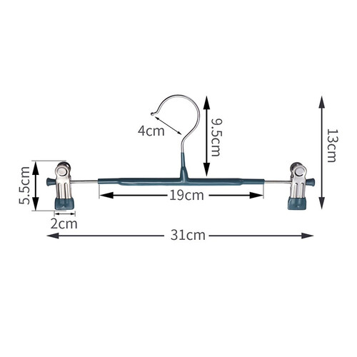 使用实心高锰钢制作,用料更足,承重性强,久用不变形。挂架的两端由胶套封堵,既能避免夹子滑出,又能防止衣物被刮。