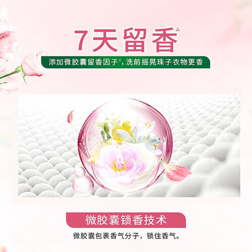 内含微胶囊留香因子,可以牢牢锁住香气,并附着在衣物纤维,通过摩擦持久生香。更有抑菌因子添加,可以防止细菌滋生。