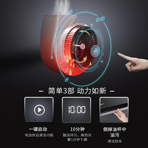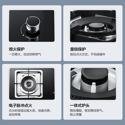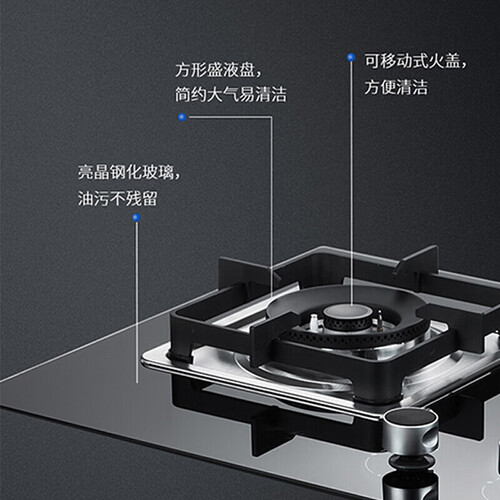 5.0KW猛火烈焰,快速升温,大火力畅快爆炒,受热均匀。一体黑晶玻璃钢化面板,更容易清洁,轻松融入家居生活。