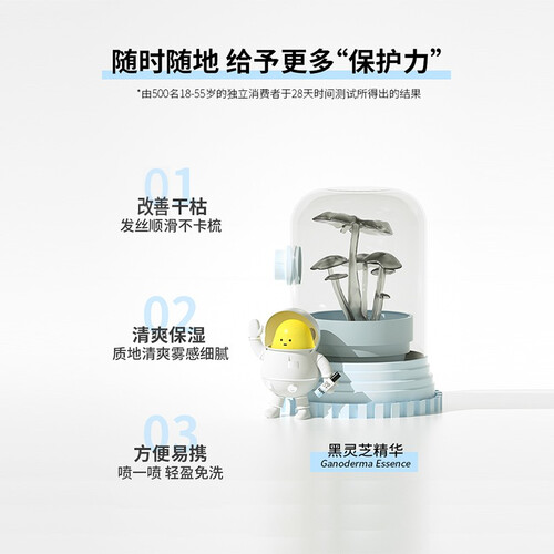 0.18MM细密喷雾,协同黑灵芝、氨基酸等高倍营养极速渗透发芯,补充营养元素,改善毛躁,让秀发清爽不油腻。