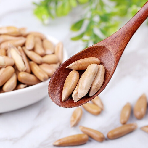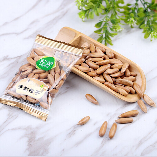 外形修长,颗粒饱满,壳薄易剥,美味不用久等;每一颗松子都十分新鲜,不经过过度加工,因而香气四溢,一口下去唇齿留香。
