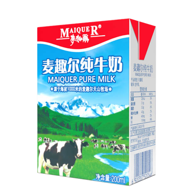 奶源来自海拔1000米的新疆天山牧场,牛奶品质纯净健康。每100g中含有3.1g优质蛋白质,200ml包装方便携带。