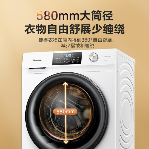 内筒直径宽达580mm,能让衣物尽情舒展,减少褶皱,洗后免熨烫。衣物比较薄,可以选择快烘程序,20分钟轻松搞定。