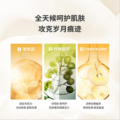玻色因成分帮助淡化细纹,抚平岁月的痕迹,令肌肤更加紧致饱满。多种珍稀植萃可帮助弹润肌底,令肌肤饱满持久。