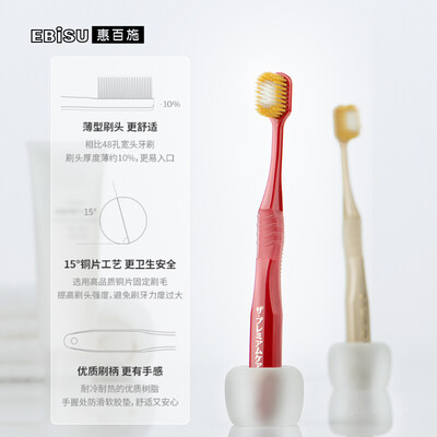 采用54孔双重植毛牙刷设计,刷牙的同时也能享受按摩,呵护娇嫩牙龈。15度铜片工艺固定刷毛,持久使用不掉毛,干净耐用。
