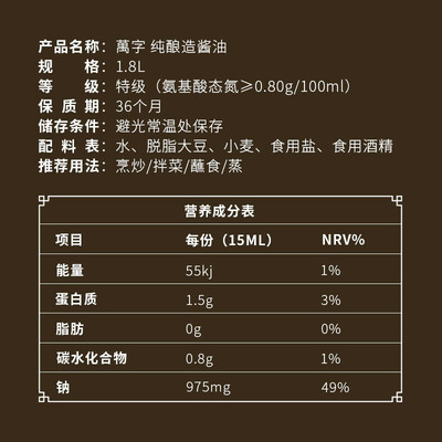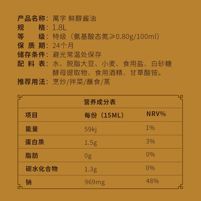 万字 天然原酿酱油