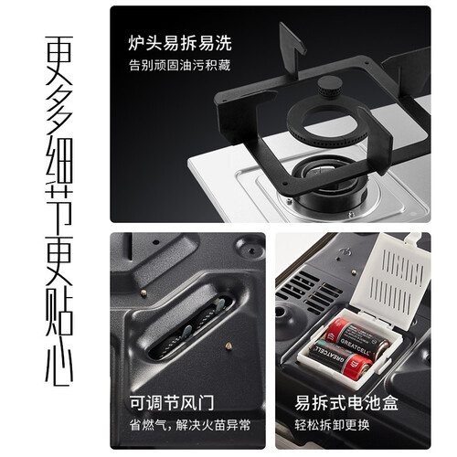 拉丝不锈钢面板,更容易清洁打理,厨房多元化搭配也很棒。多段火力,煎炒烹炸可以自由调控,随心所欲烹饪不再怕。