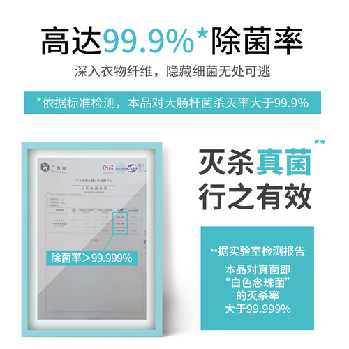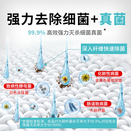 配方中添加季安康成分,性质安全,配合洗衣液使用,能更好地去除衣物上的细菌;无磷无荧光剂添加,洗衣更安心。