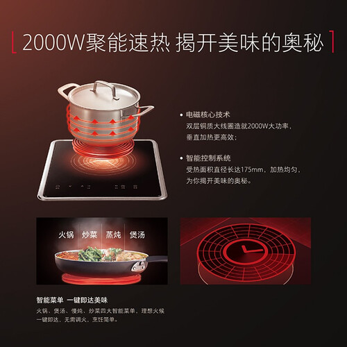 2000W大功率,烈焰猛火,可以畅快爆炒,锁住食材原汁原味。气电两用,可以满足不同需求,即使停电也能安心使用。
