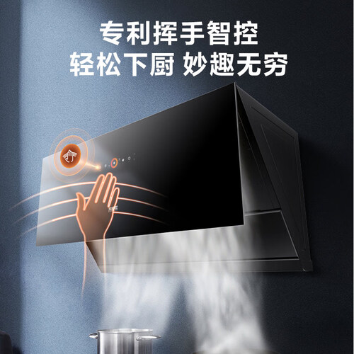 22m3/min大吸力,爆炒无忧,厨房空气时刻清新。专利挥手智控技术,搭载红外感应系统,挥手就能操控烟机,开启科技生活。