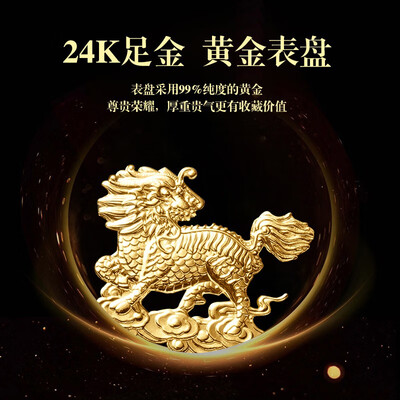 麒麟采用足金雕刻,传承华夏精神,带来图腾美好寓意。结合316lL精钢表带,舒适贴合手腕,腕间自如活动。