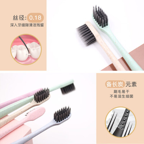 将炭微粒添加到刷毛中,它那强劲的吸附能力,轻松去除口腔异味,让你时刻拥有清新好口气。配以麦秆刷柄,环保又质感。