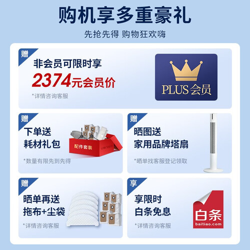 含有1000w大功率集尘风机,可以进行自动清洁吸尘盒,完全解放双手。扫吸拖倒一体式设计,非常的省心。