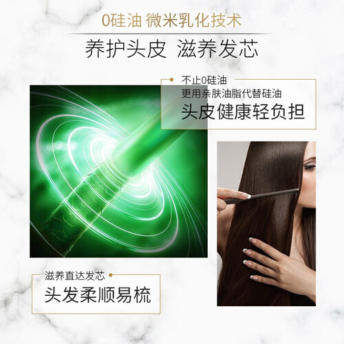 0硅油微米乳化技术,协同养分子快速渗透,减轻头皮负担,轻盈舒畅。人参+薄荷+银杏精华,稳固亮发,舒缓头皮,打造健康环境。
