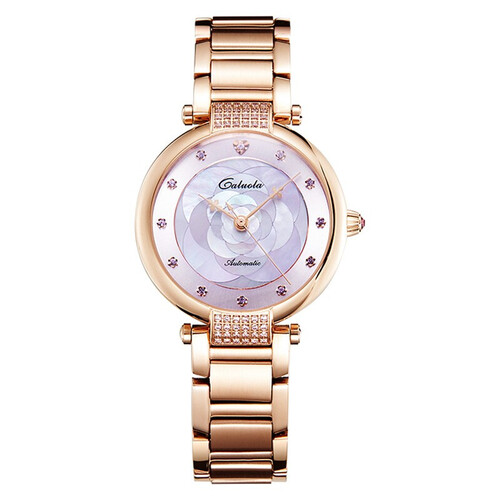 花朵图案表盘,呈现出更为亮丽的视效,俘获你的眼球。钢质表带经多道抛光打磨,持续散发出细腻动人的光泽。