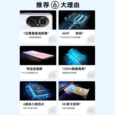 搭载1亿像素镜头,图像细节丰富,画质堪比单反。66W快充技术,片刻电量回血,给你满满安全感。