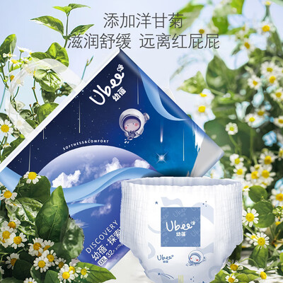 采用柔薄芯体结构,轻柔的质地,贴合宝宝肌肤,享受轻薄无物般的穿着体验。添加洋甘菊成分,滋润宝宝肌肤。
