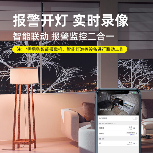 支持和创高智能灯泡联动使用,只要报警器响应,就能让室内的灯光亮起来,真的是安全管家。可搭配创高智能家居系统,看家更安全。