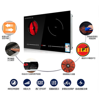 搭载AI声控系统,动动嘴就能切换风力、控制开关机,操控简单方便。灶具采用一电一陶组合设计,可以满足不同使用需求。