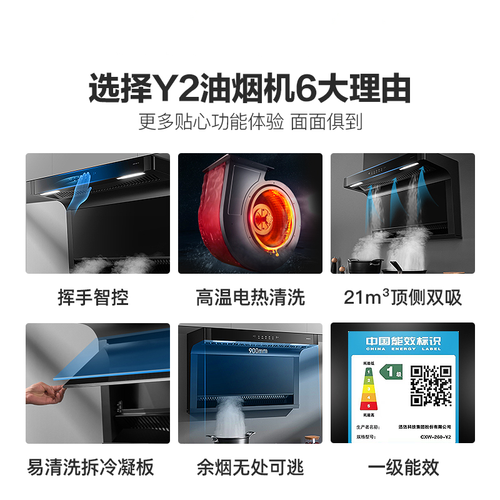 拥有两挡风速可调节,定制风量,避免能耗浪费,使用更节能省心。一键热清洗,自动除油,释放双手,清洁更简单。