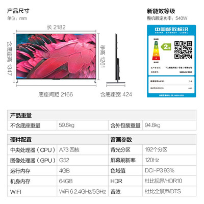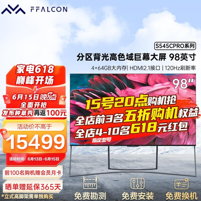搭载98英寸无边框全面屏,视野更广阔,在家就能轻松畅享堪比影院震撼视觉体验。搭载四核CPU高性能处理器,提升整机性能。