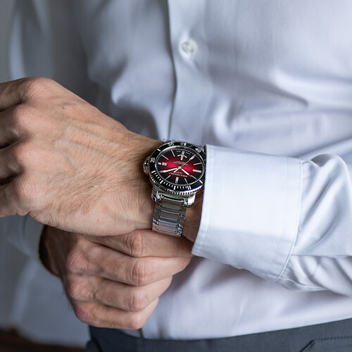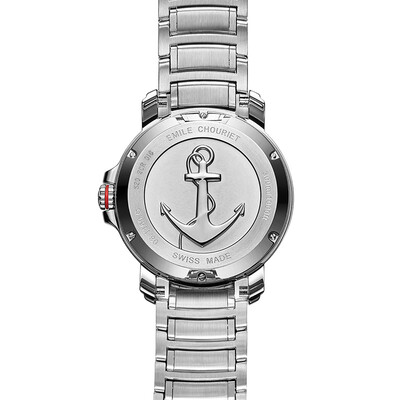 在阳光照射下散发迷人光泽魅力的日晖纹盘面,佩戴在手腕上炫彩夺目。表背上的船锚标识,充满冒险精神,做工也很精细。