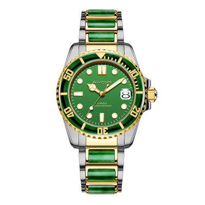 精选蓝宝石表冠,呈现优雅美感,彰显男人的沉稳魅力。玉圈经过手工打磨制作,尽显不俗工艺,适合当礼物送给爱人。