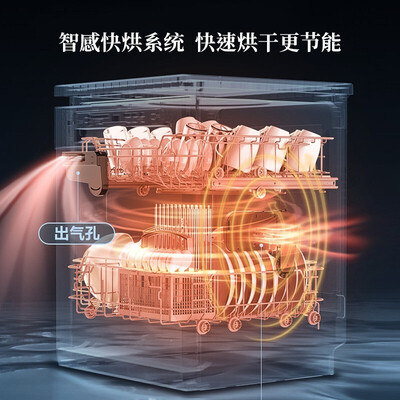 通过钛净-UVA光波照射反应生成大量净味离子,可保持腔体及餐具持久清新。13套大容量配合中式双层碗篮设计,大家庭也适用。