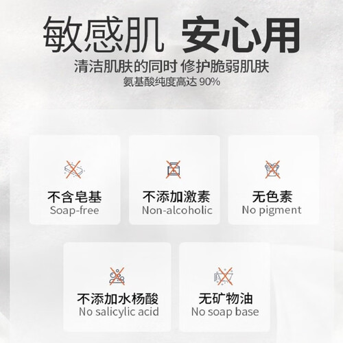 不含皂基,不添加水杨酸,无矿油、色素等成分,温和洁面,有效控油、除螨、祛痘,清洁更补水。