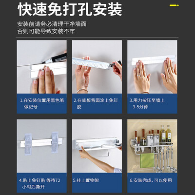 多元化储物空间设计,分区收纳各种厨具,有条不紊。免打孔设计,方便安装,呵护墙面,承重力强。