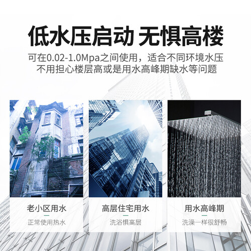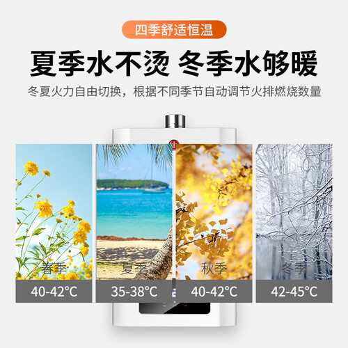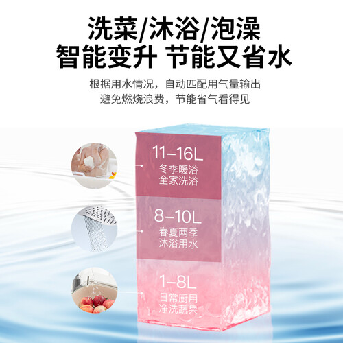 高灵敏燃气比例阀,自动调节温度,省下更多燃气花销。严格选用无氧铜水箱,防锈耐腐蚀,经得起长时间使用。