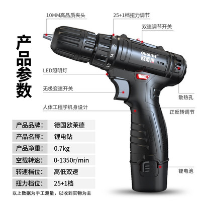 锂电钻配备精钢夹头,夹持稳固不会出现打滑现象,硬度高长久使用不易磨损。配件丰富齐全,自由替换使用方便。